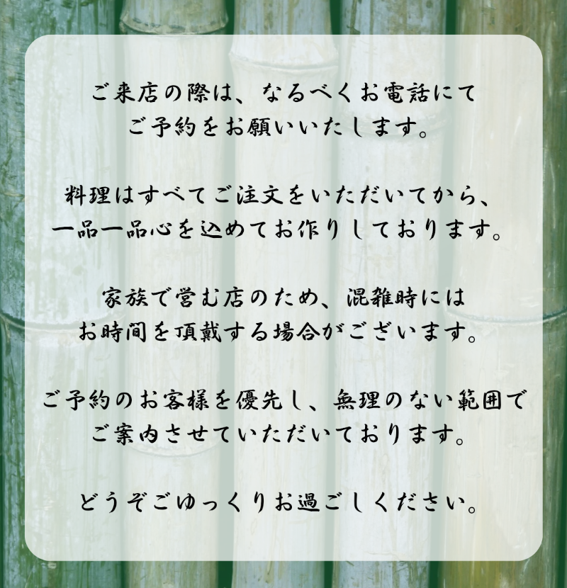 ご予約はお電話でのみ受け付けております